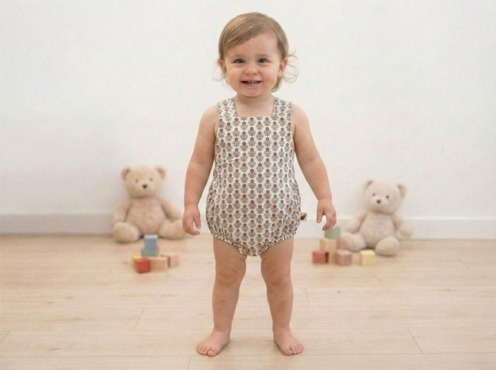 Comodidad total para sus primeros pasos. Este pelele ligero facilita el cambio gracias a su apertura inferior y garantiza suavidad en cada etapa del bebé.